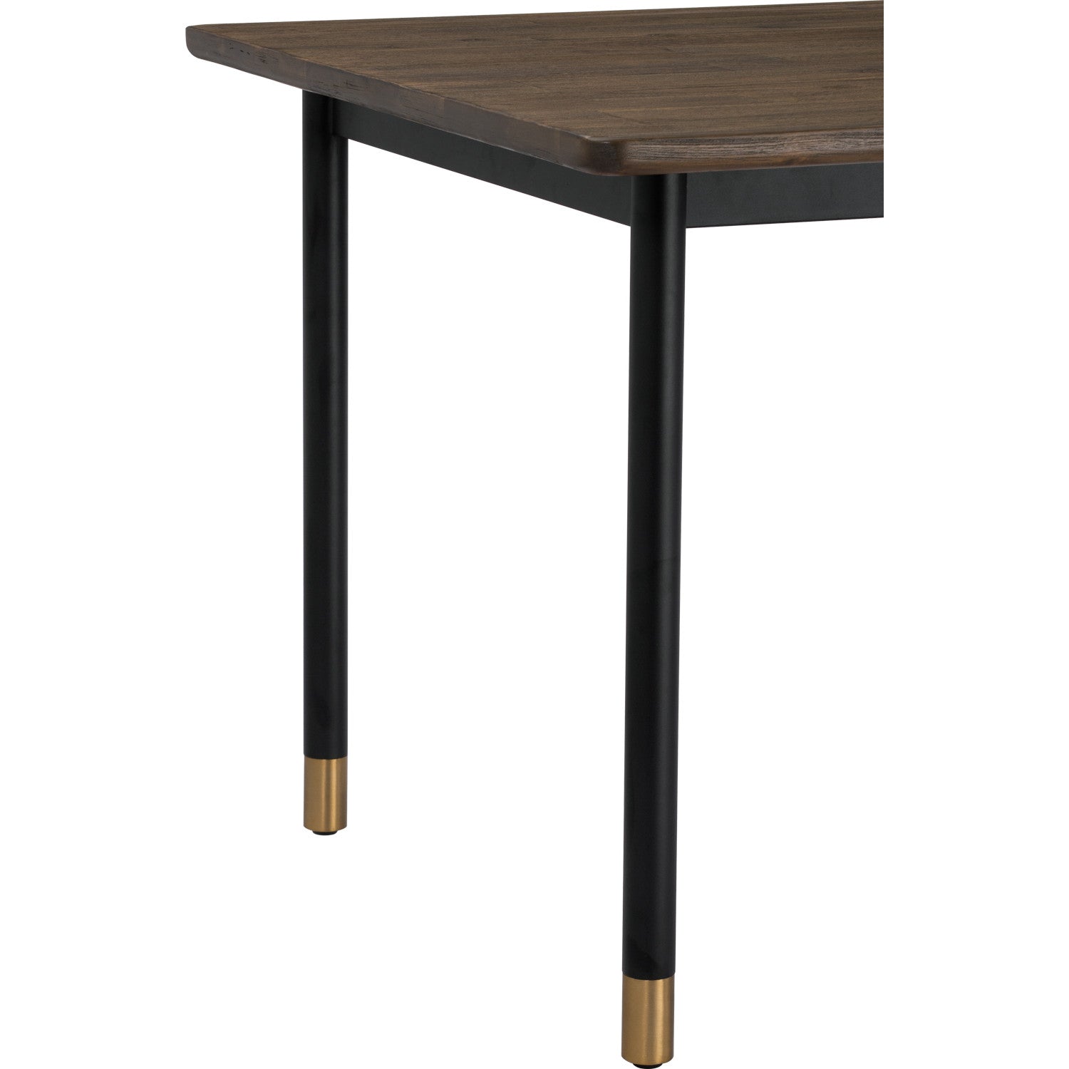 The Hamilton Dining Table featuring sleek metal legs in sand black and a toffee-toned oak and acacia veneer top, it offers durability and modern appeal. A refined choice for stylish dining spaces.