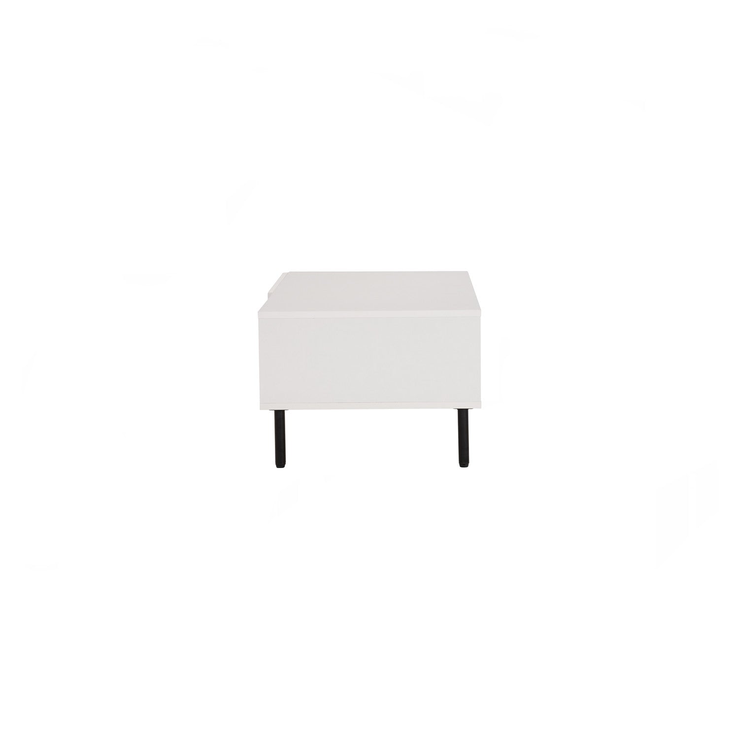 The KOTKA Coffee Table supported by black epoxy-coated metal legs, it features a melamine laminated top in crisp white for a clean, timeless look. Its rectangular form provides generous space while maintaining a light, airy presence. The sturdy construction ensures everyday durability, making it as practical as it is stylish.
