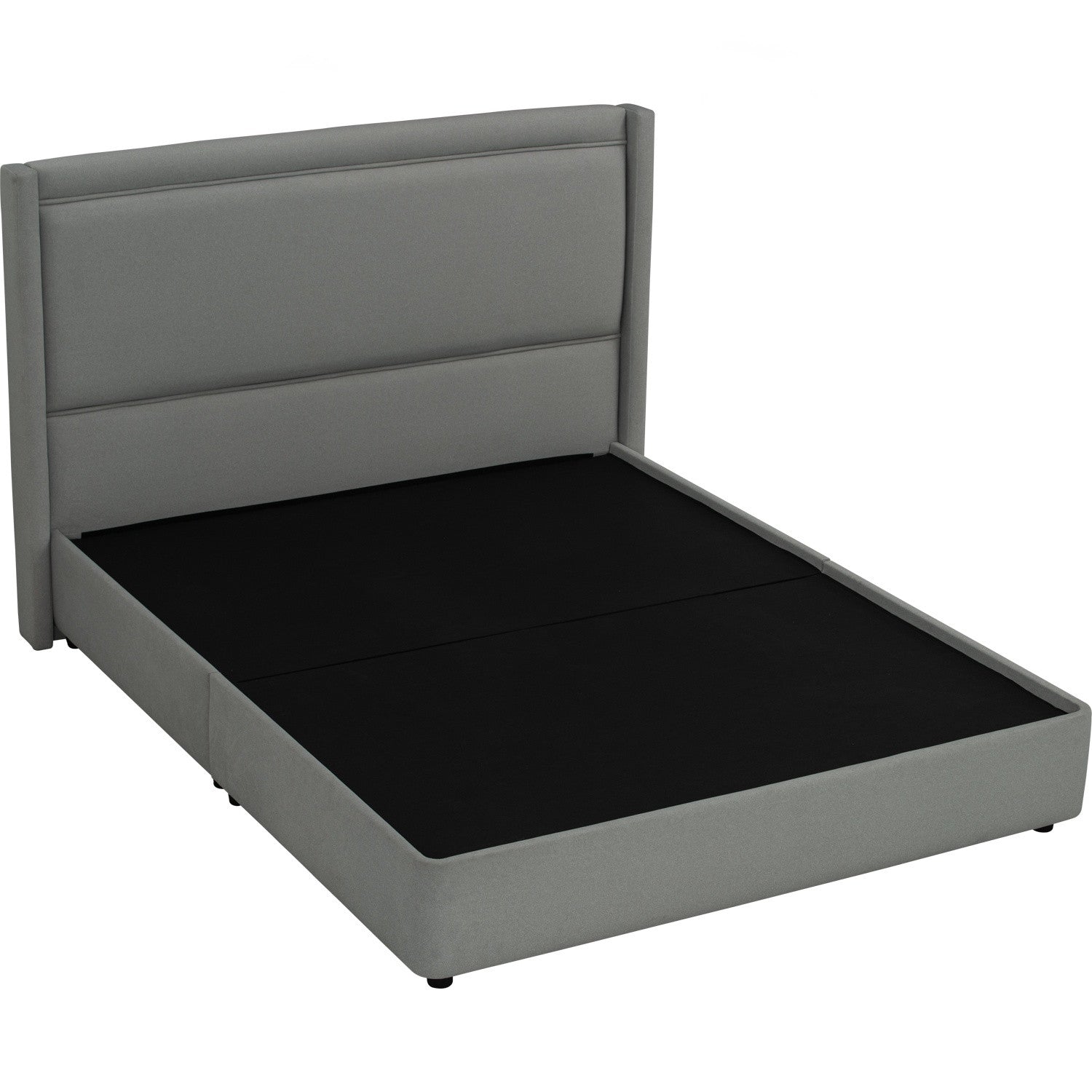 The LILAH Bedframe (Queen Size) features warm grey fabric upholstery that complements modern and traditional interiors alike. Sturdy black PVC legs provide stable support and a clean aesthetic. The soft fabric upholstery creates an inviting focal point, while the durable construction ensures long-lasting performance. Perfect for those seeking a stylish, well-proportioned bed that balances form and function.