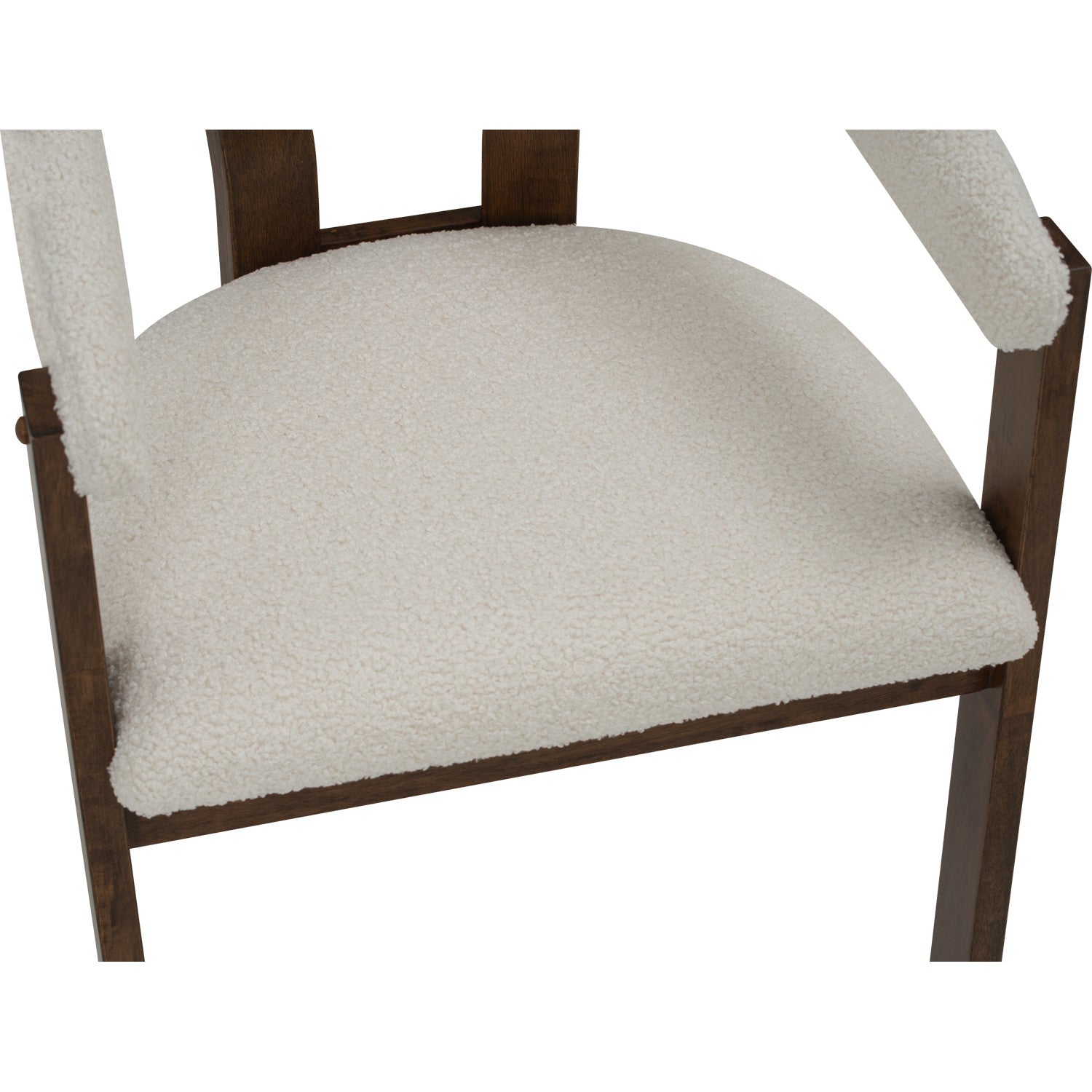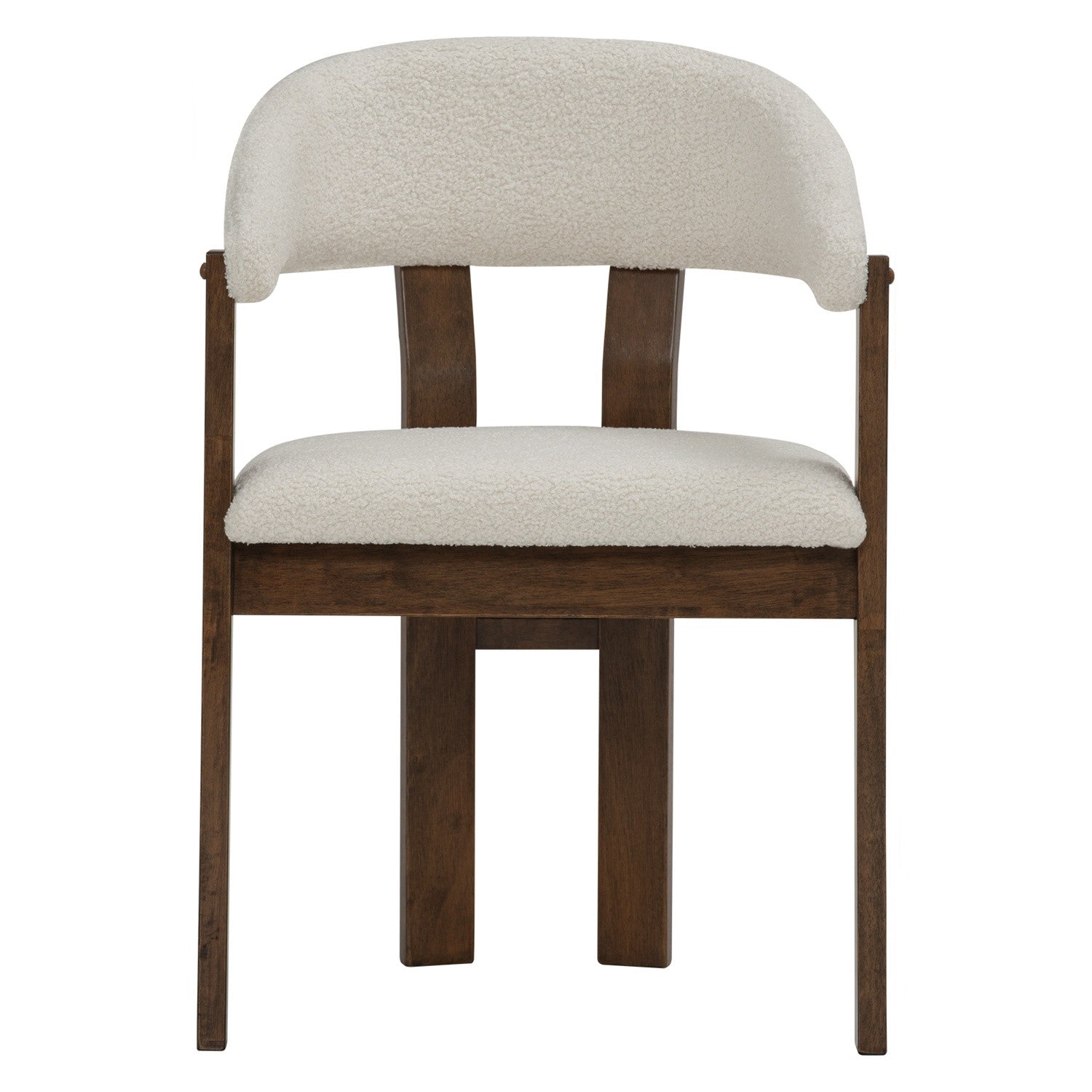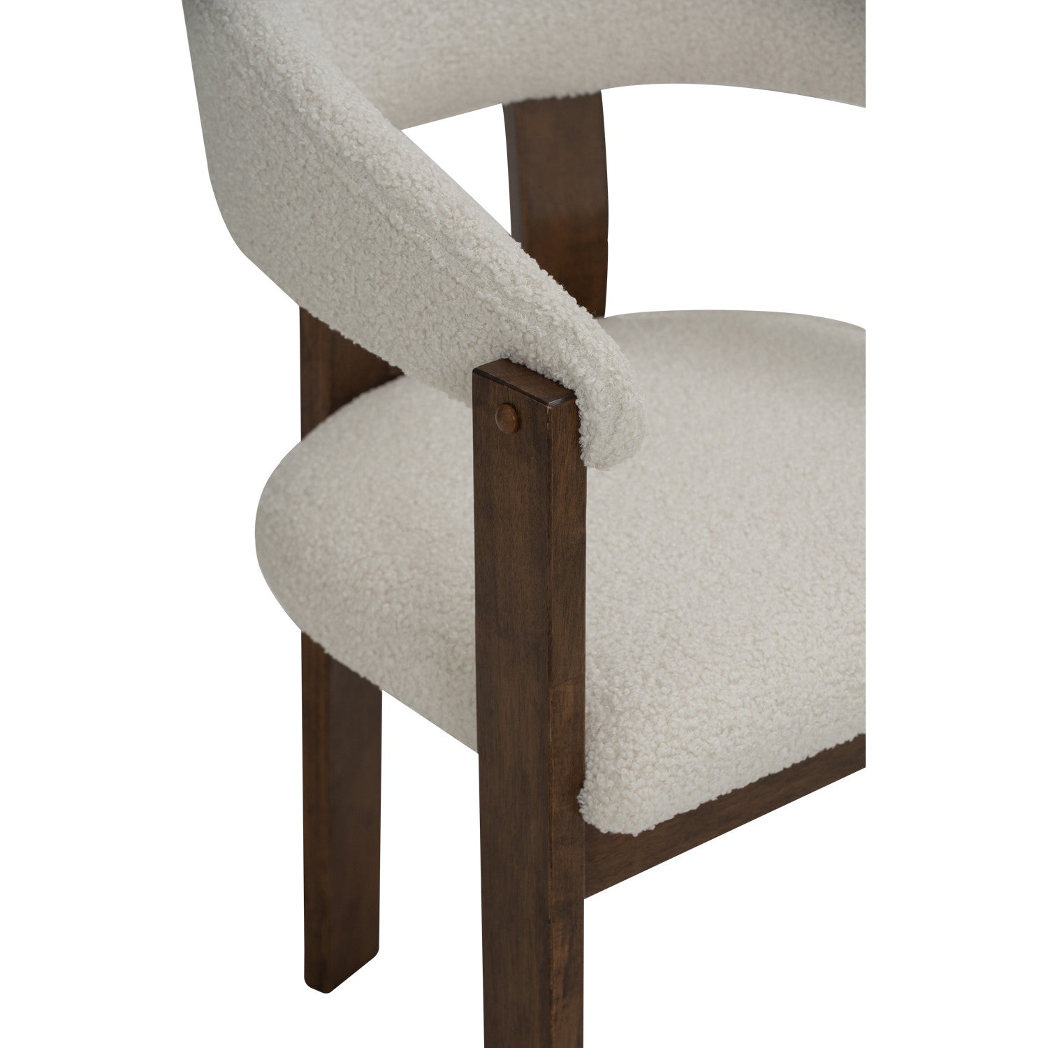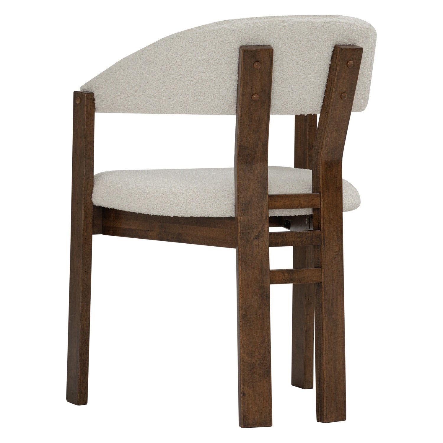 The NINA Dining Chair with solid wood frame in cocoa colour provides sturdy support and warm visual appeal, while the cream white upholstered seat and backrest offer comfort and versatility. The neutral fabric finish complements any dining aesthetic, from contemporary to traditional settings.