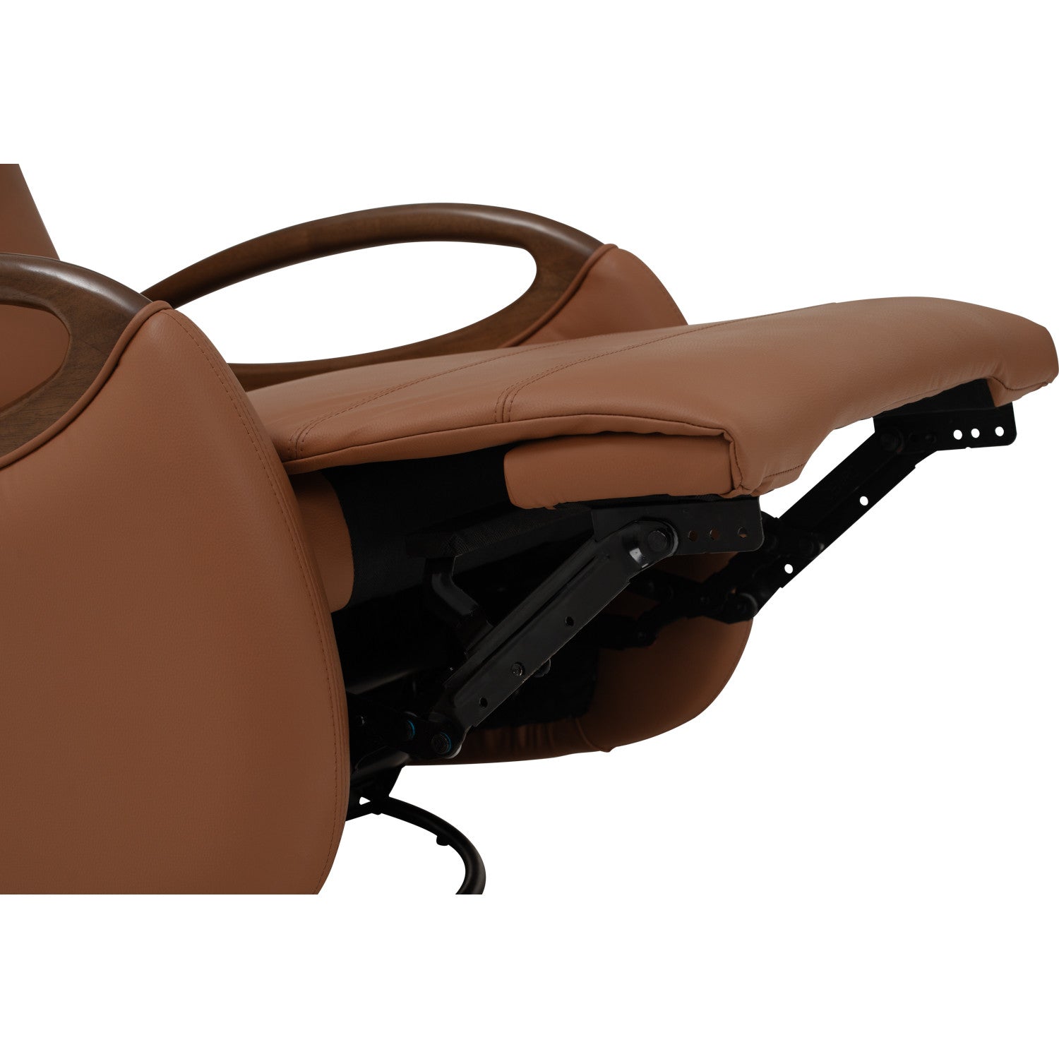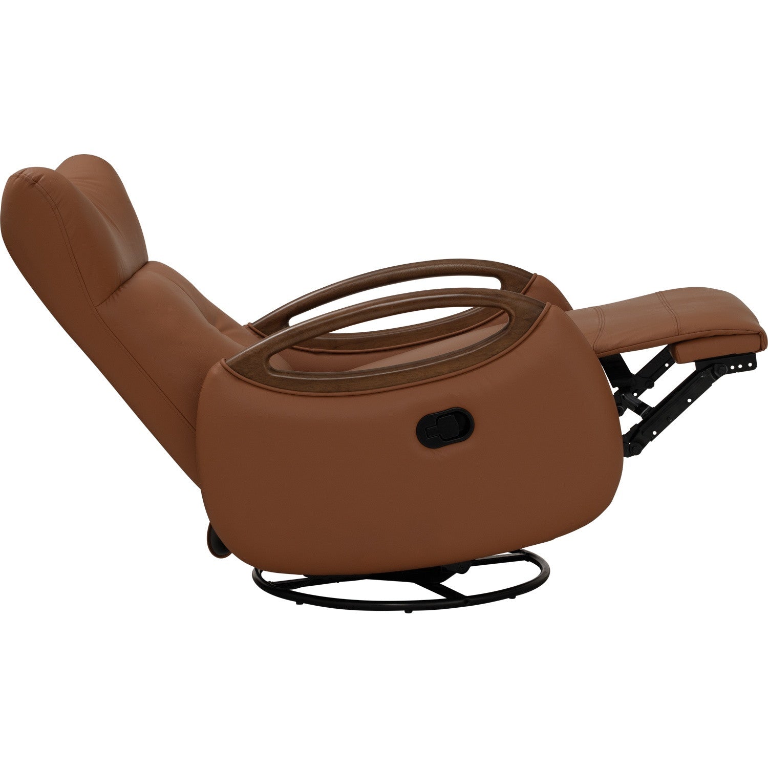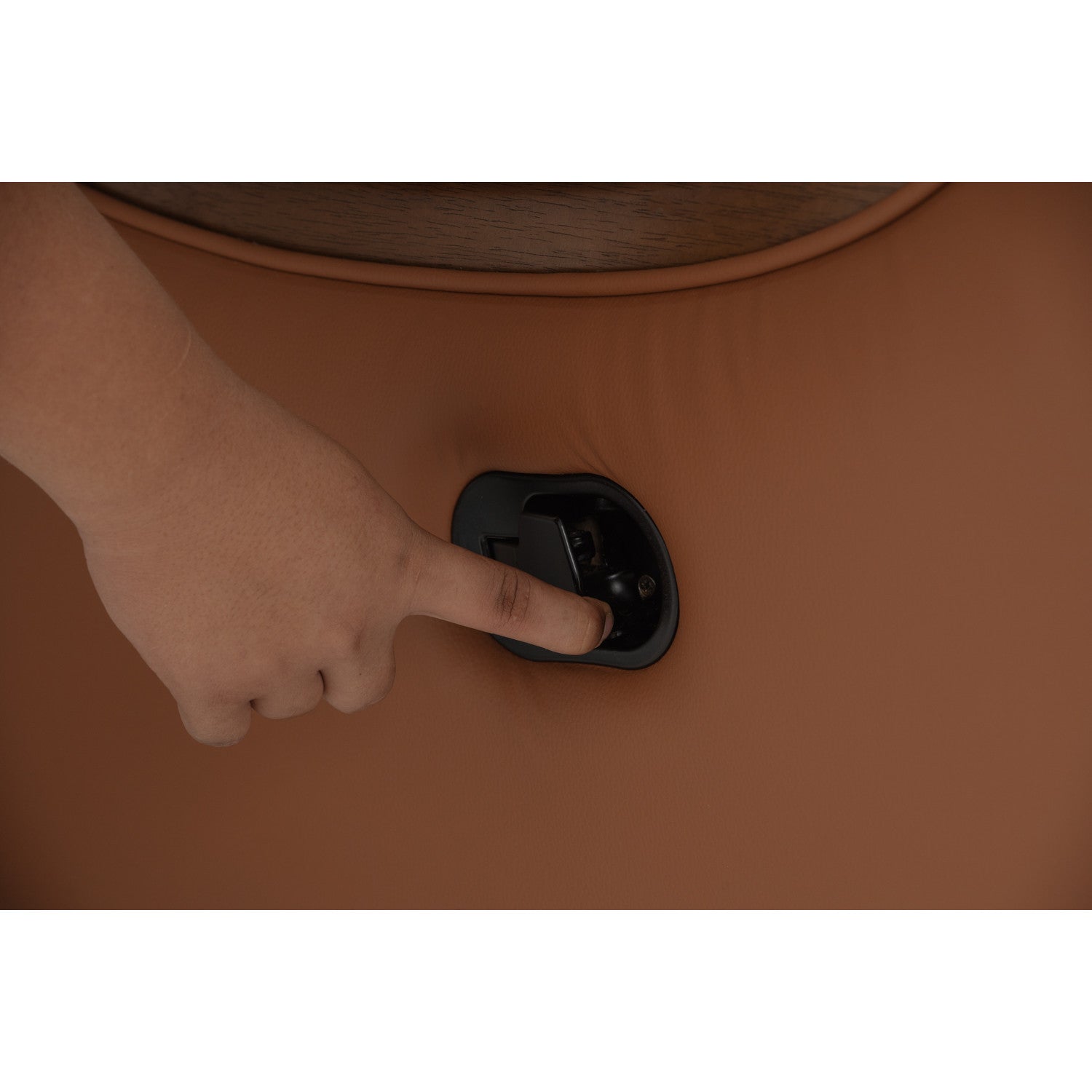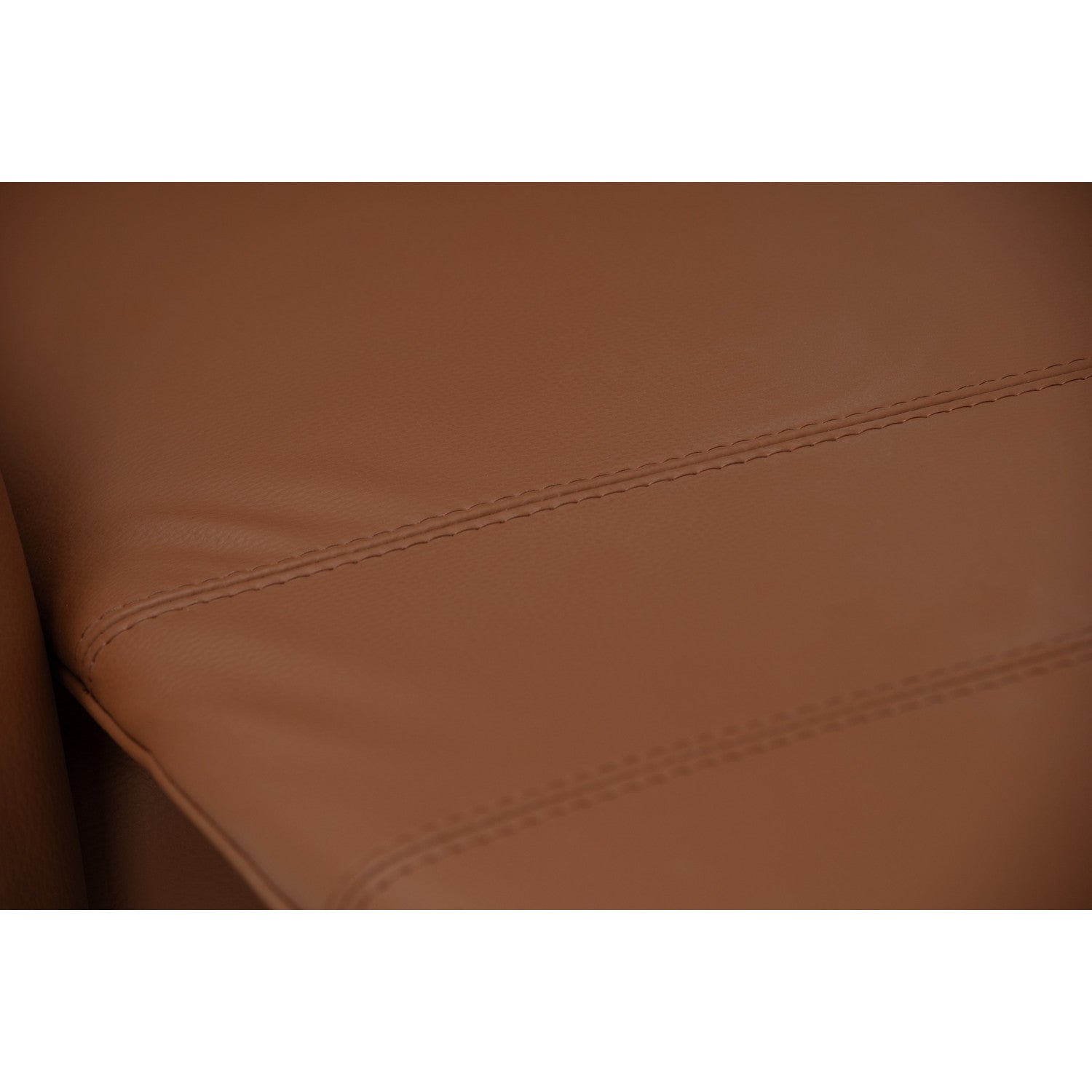 The OMODA Recliner Sofa features premium bronze vinyl upholstery paired with rich cocoa-toned solid wood arms for a modern, elegant aesthetic. The reclining mechanism allows you to adjust to your preferred angle, perfect for unwinding after a long day. Bronze vinyl with cocoa wood accents creates a warm, contemporary look that complements any living space. Ideal for apartments, studios, or as a statement piece in your bedroom or lounge area.