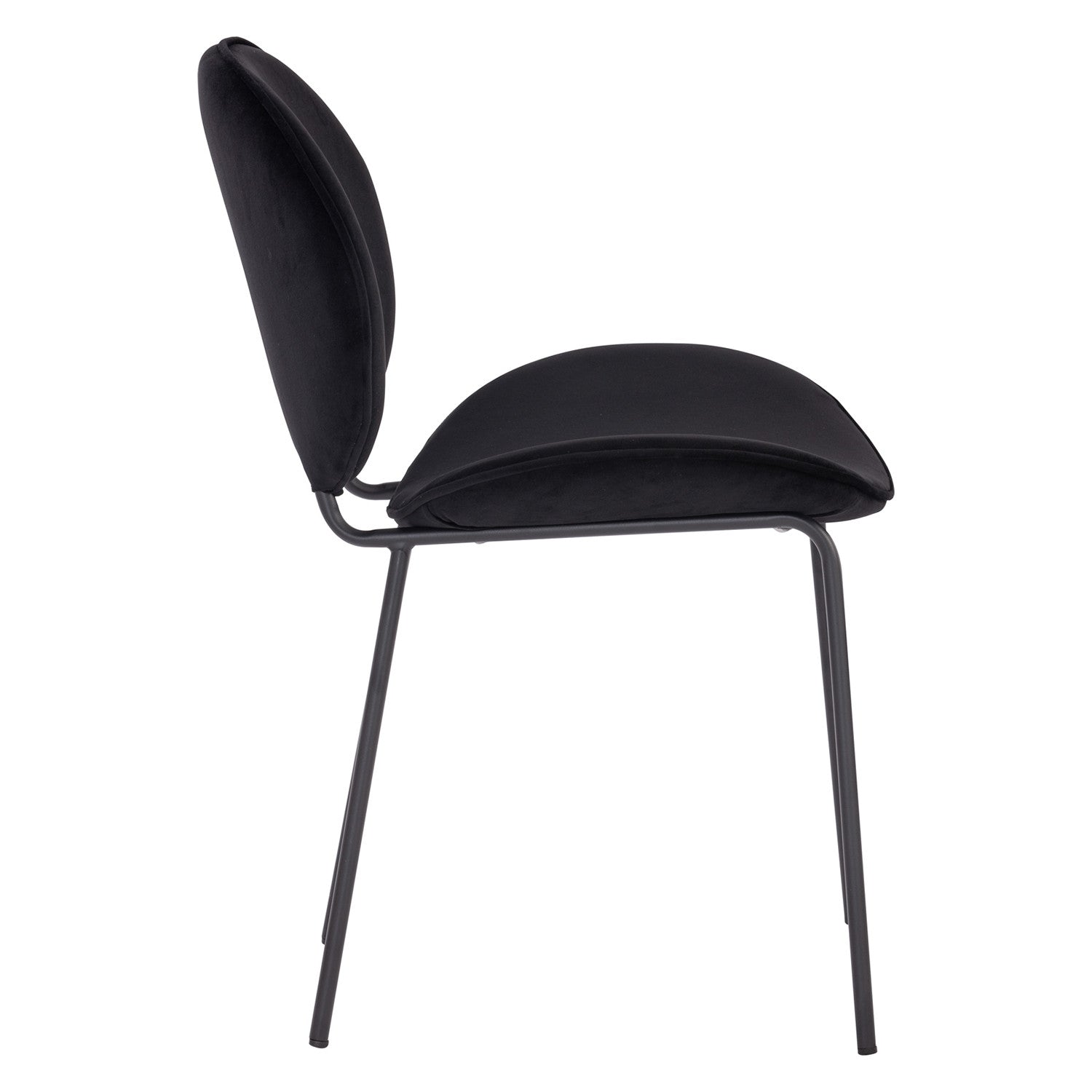 The ORMER Dining Chair featuring slim black metal legs, it balances strength with a refined silhouette. Upholstered in a onyx tone fabric, it introduces a rich accent to dining spaces. Suitable for modern homes, restaurants, or office lounges.