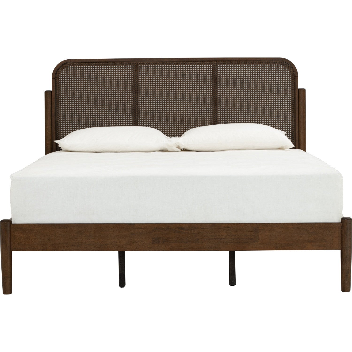 The TIMO Bedframe combines sturdy solid wood construction with a contemporary synthetic rattan headboard, creating a versatile piece that suits modern and natural interiors. The cocoa colour finish complements various décor styles while the durable wood legs and frame ensure long-lasting stability.