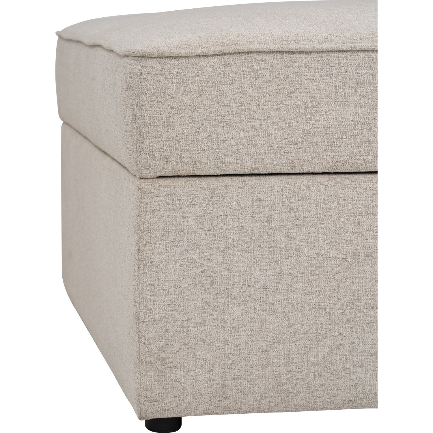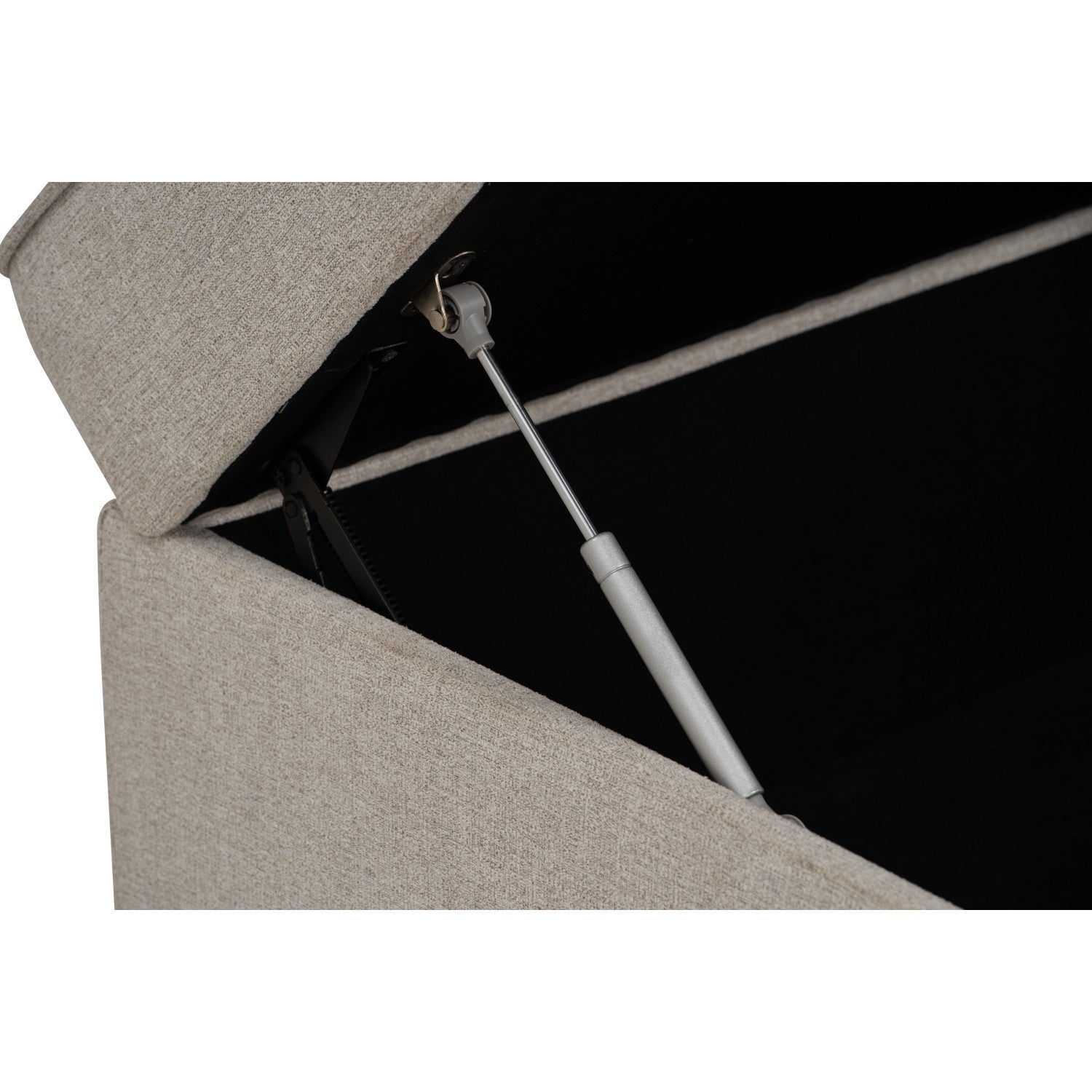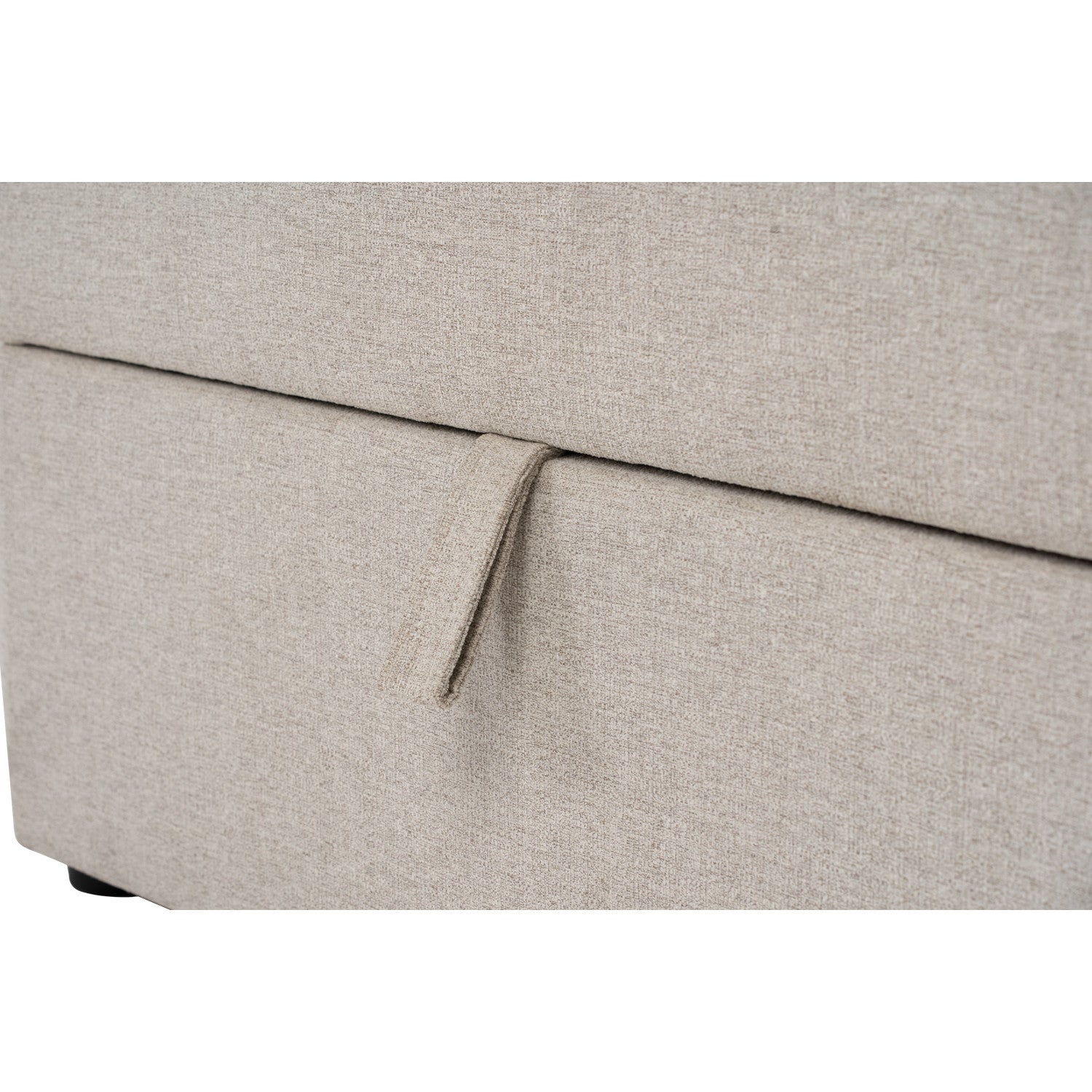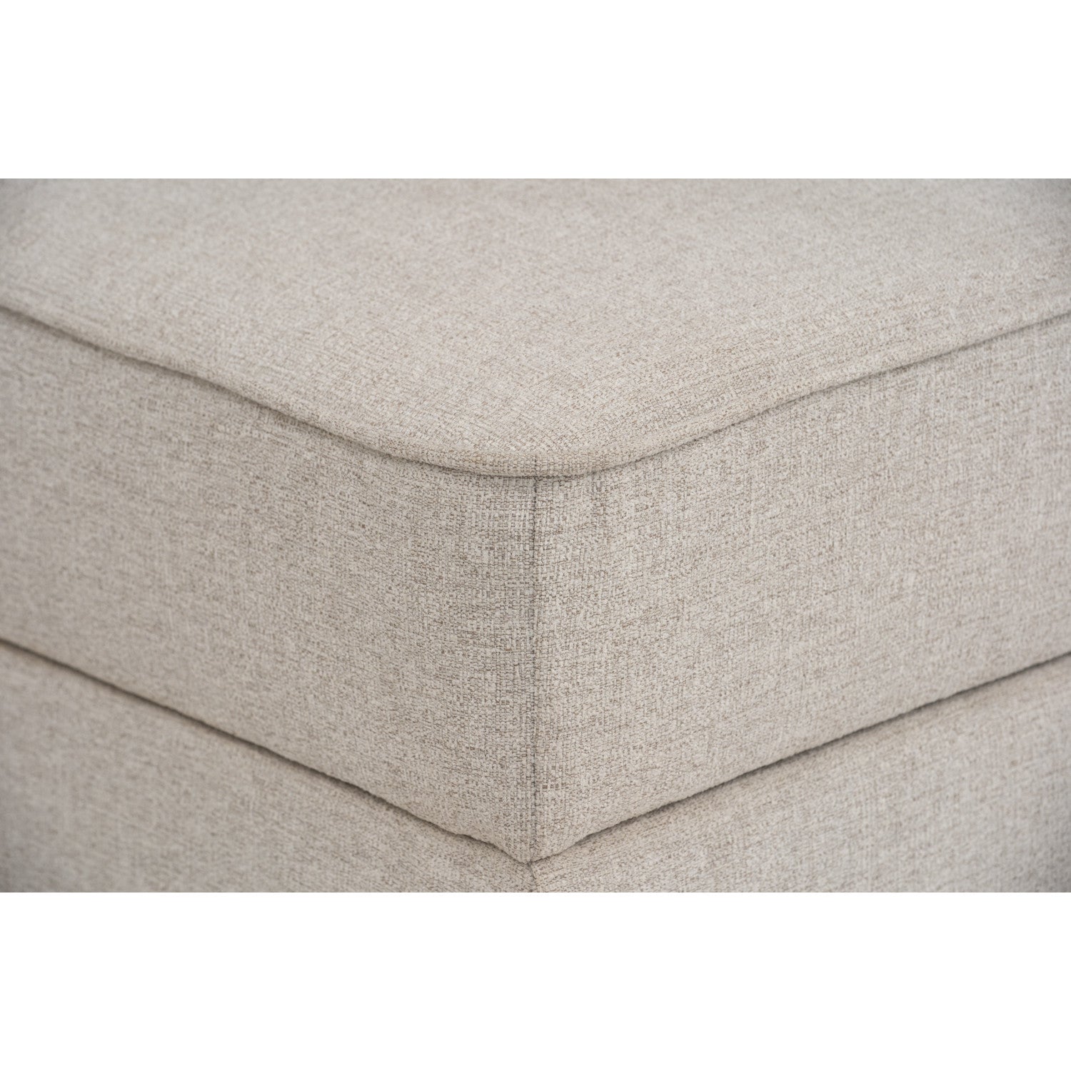 The TRAVERESE Ottoman with Storage built on sturdy solid wood legs in a sleek black finish, it ensures long-lasting support. Upholstered in chenille fabric in a crisp white shade, it presents a clean and sophisticated look. With hidden storage inside, the ottoman adds practicality while maintaining a refined design, making it a smart choice for compact living spaces or versatile seating areas.