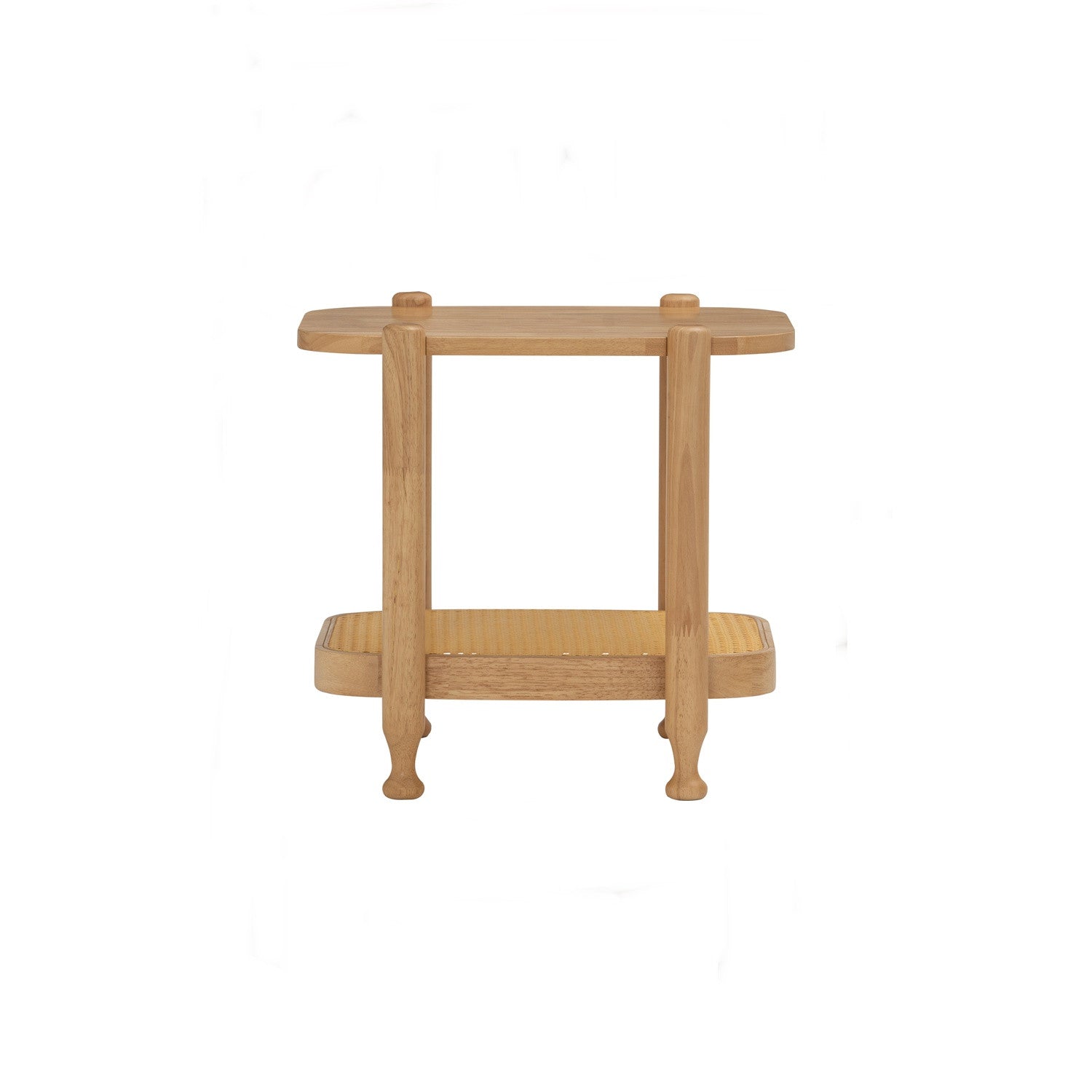 The WILLOW Side Table with two-layer frame pairs a sturdy wood top and body with a synthetic rattan bottom tray, offering both durability and visual warmth. The natural finish highlights the wood grain while the woven rattan accent adds textural interest. Ideal as a bedside companion or living room accent, this compact table provides practical surface space without visual bulk. The rattan base keeps items organized and accessible, making it equally suited for displaying décor or storing essentials.