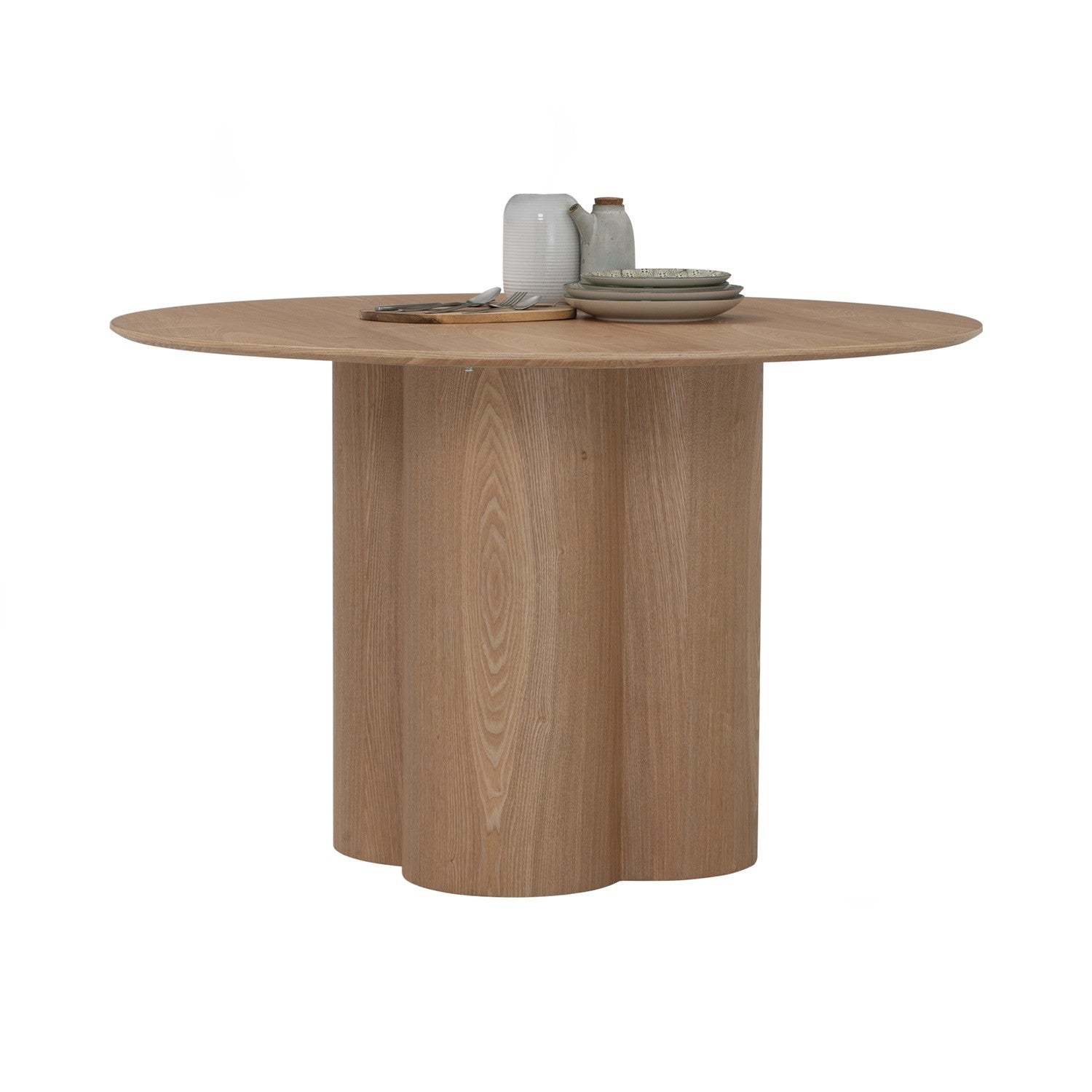 The ZOLI Round Dining Table crafted from MDF with veneer for both legs and table top, it exudes warmth and durability. Its round shape and natural oak finish create a timeless focal point for any dining room.